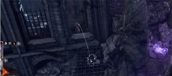 2. 跳到窗户外后,使用技能羽落术下降到下面的平台上,下去之后会发现一具石化的卓尔。