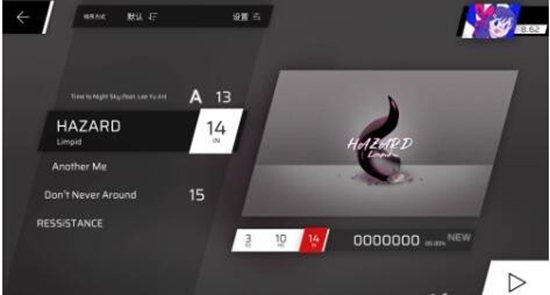 1、进入游戏主界面,点击想要弹奏的歌曲,可以看到歌曲图片左下角有3个白色块。哪一个白色块变成蓝色就说明现在歌曲弹奏位于哪个程度。