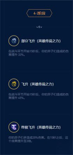1. 部分飞升:在战斗环节开始15秒后,你的棋子造成的伤害提升33%。
