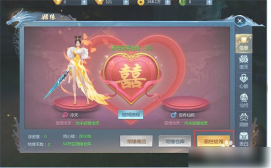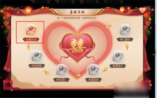 在我要提亲页面,选择需要提亲的对象,然后等待对方同意即可完成结婚。