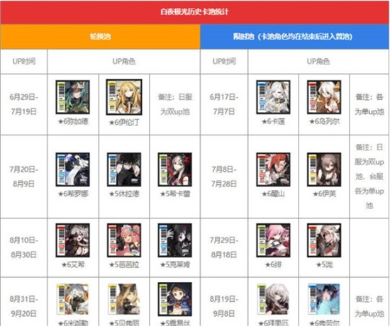 白夜极光卡池顺序一览2023: