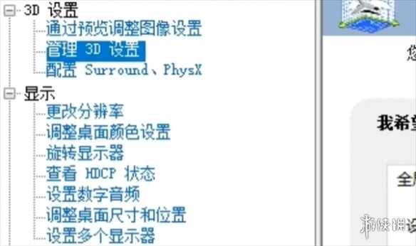 然后在弹出的控制面板里左侧选择【管理3D设置】。