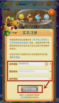 点击实名认证选项之后进入相应的页面,然后在弹出来的界面中点击注册并领取。然后会进入实名认证界面。这个时候如果你已经实名认证过了,就不能够再领取礼物了。