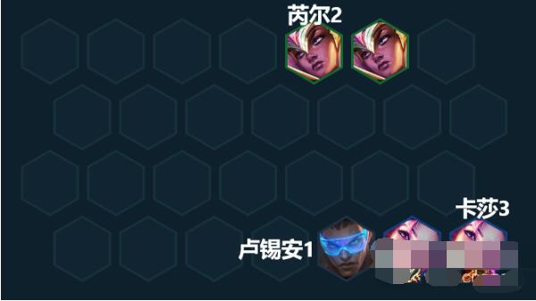 如果前期第一个强化就已经拿到了好事成双的话,就可以上两个芮尔+两个卡莎,开出2星守羁绊,再补一个卢锡安或者EZ来凑2迅射。