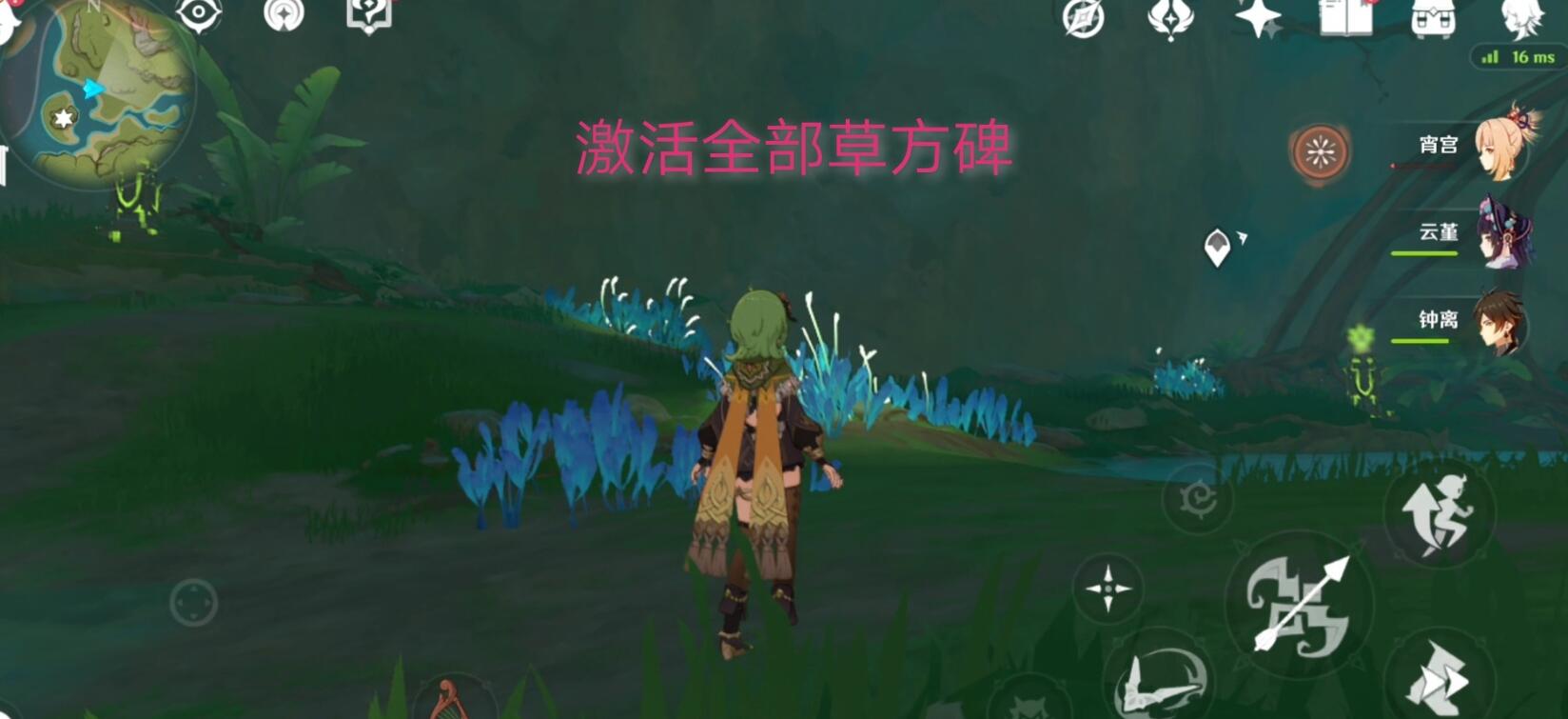 将所有的草元素方碑都激活。(有一个方碑坏了,需要使用道具琴来修复)