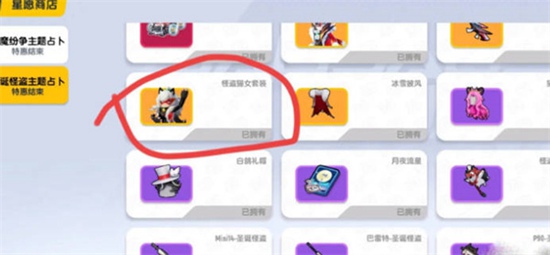 2:接着我们在点击星愿商店,点击圣诞怪盗主题占卜,我们找到怪盗猫女套装,如图所示;