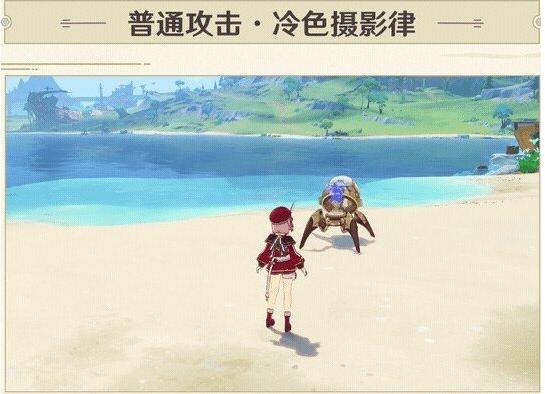 以特制留影机「温亨廷先生」瞄准目标,进行至多三段的攻击,造成冰元素伤害。
