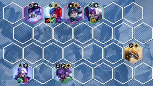 阵容副C选择的是拉露恩,与永恩同为3费可一起追3星,其技能可打敌方棋子最多的一排,压血线能力非常强,这样可大幅度帮助永恩更快的斩杀敌方棋子。
