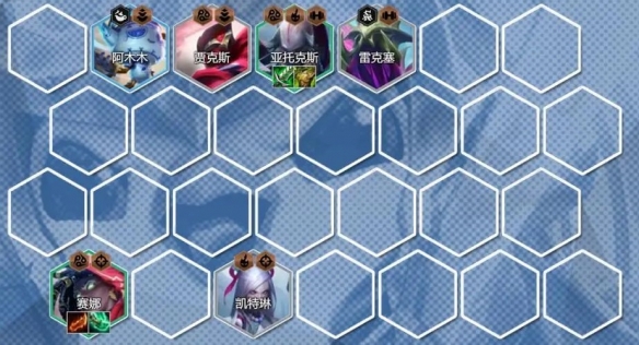 这套阵容玩的就是永恩,这赛季永恩技能比较霸道,释放技能可攻击3格内最远的敌人,关键是每次释放技能就会多加1个格子,这样永恩第二次技能技能就可打到敌方后排C位,
