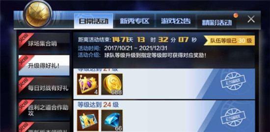 5、升级活动,每天参加比赛获得足量的经验就可以进行升级,升到特定的等级就能获得钻石奖励