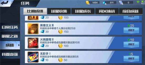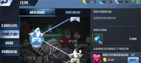 6、成就活动是钻石的主要来源,但是很多任务是很难完成的,简单的就是获得相应数量的球星,达到相应的篮板、分数等等