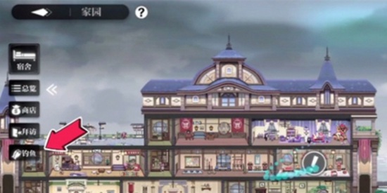 2、在家园界面的左侧,点击最后一个钓鱼。