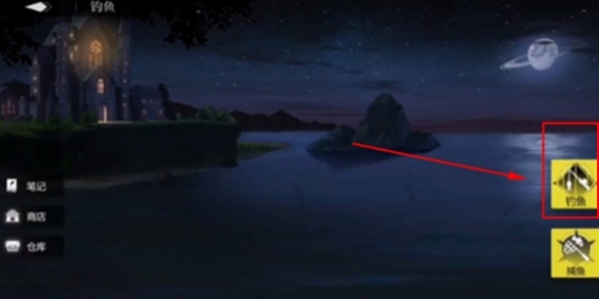 3、进入界面,点击屏幕右边钓鱼,即可正式开始钓鱼