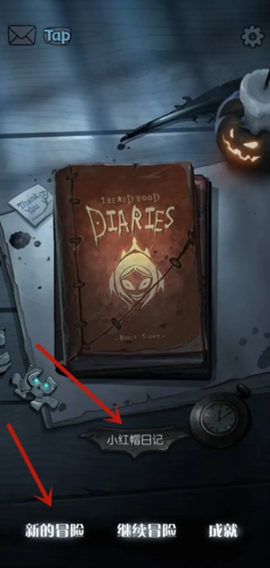 1.打开月圆之夜选择【小红帽日记】,再点击【新的冒险】。