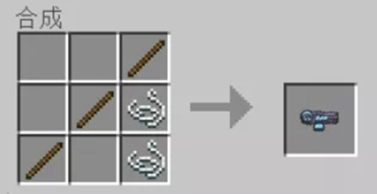 它的合成方式很简单,按照钓鱼竿的合成配方进行合成,大家就能获得粒子激光炮了。当冒险家把模式切换成潜行时,它仍然可以用来钓鱼哦,一物多用是不是很方便!