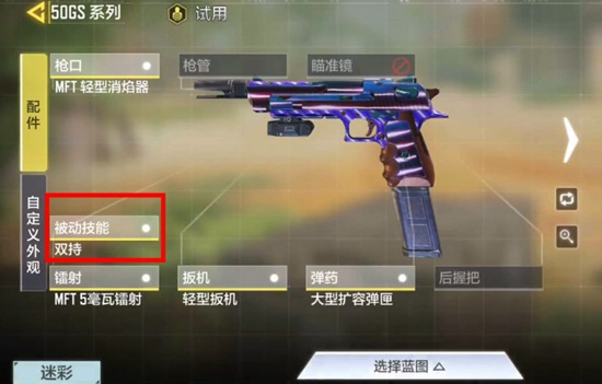 在被动技能列表中勾选双持技能,然后玩家就可以在游戏对局中双持50gs了。