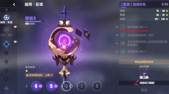 器用等级达到7级才能获得2个晶芯能量。