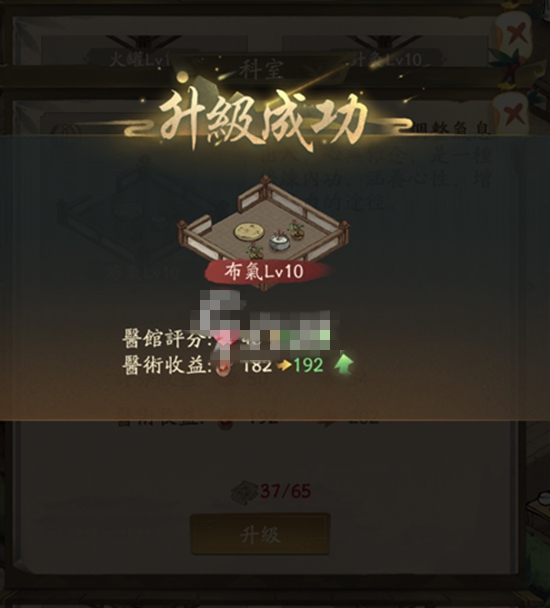 ,这就需要掌柜先治疗400个病人。想要升级布气科室等级就需要建造所有科室后继续需消耗医馆图纸升级布气科室。