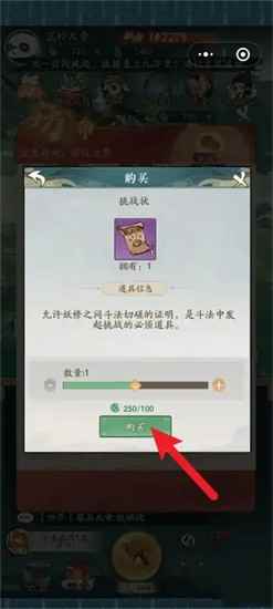 3、进入挑战状购买页面,点击坊市币兑换购买即可。