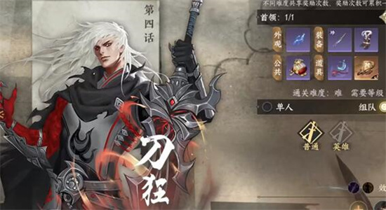 1、首先要完成武林风云录的第四话-刀狂,获得刀缨装备。