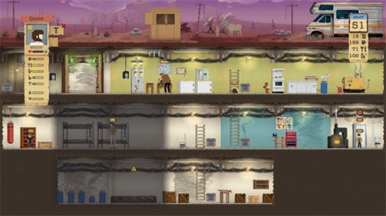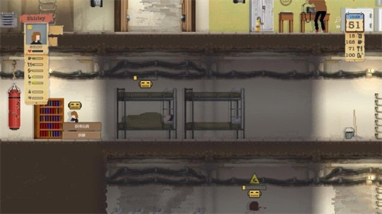 在《庇护所》中,人物一共有饮水、进食、睡眠、排泄、沐浴五大需求。如果任何一项值达到顶峰,人物会陷入相应的不良状态,如脱水、营养不良等,会导致生命值逐渐下降。
