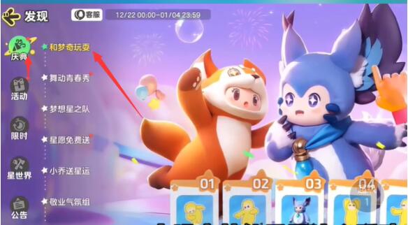 2、进入后点击庆典,然后找到活动-和梦奇玩耍。