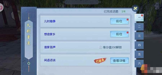 话题:与结缘对象就特定话题进行交流互动,完成话题不仅有缘分值可以涨,还有结缘礼物可以获取哦。