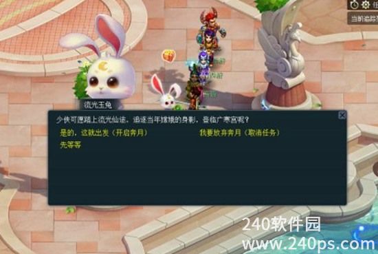 活动期间,玩家可在西梁女国(132,26)流光玉兔处选择“乘云踏月倚高楼(奔月)”开启奔月,完成任务可获得经验、金钱、物品奖励及50点中秋节积分。每100点积分可兑换一个月饼(食用后可随机增加人物属性一点)。