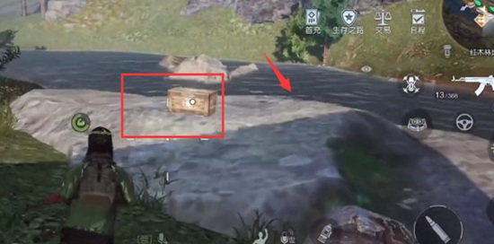 坐标:/(下图标记的是物资箱,宝箱在箭头所指的水底下)