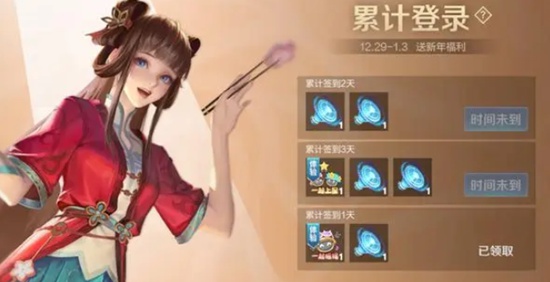 2.另外王者荣耀在元旦新年假期为玩家准备了一波免费福li,比如完成累计签到、对局等任务收集“爆竹”道具可兑换勇者皮肤火锅太乙和妄想元芳。除此之外,还上线了跨年福li,可获取免费史诗。