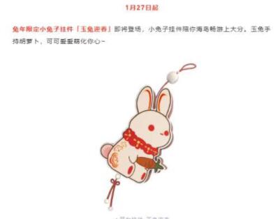 1月27日起,兔年限定小兔子挂件「玉兔迎春」即将登场,小兔子挂件陪你海岛畅游上大分。