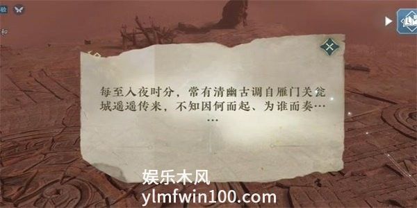 1、首先我们根据传闻上的线索,前往到雁门关瓮城一探究竟,并且完成奇遇任务长歌献君。