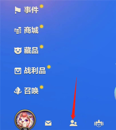 1.首先打开金铲铲之战进入游戏主页面后,点击下方社交图标。
