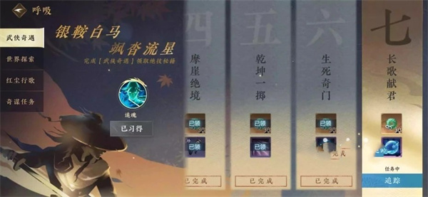 这个奇遇任务并没有接任务的NPC,而是从系统推荐的奇遇里接的,然后按照剧情跑就可以了,奖励会给到一本“长歌献君·上卷”的绝技,后续还有下卷,大家可以在九游逆水寒手游专区中搜索关键词查询。