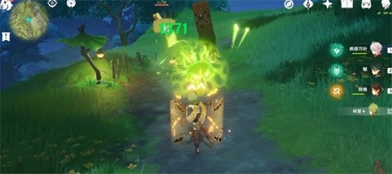元素爆发为60能量15秒冷却,释放一个持续6秒的高频草元素附着区域,区域面积并不大,会比班尼特的圈小一丢丢。
