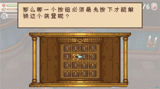 图书馆中间骑士像的后方任务谜题为“开启宝箱”,玩家要找到16个按钮中第一个按的那一个,答案是图中第二排第三个按钮。