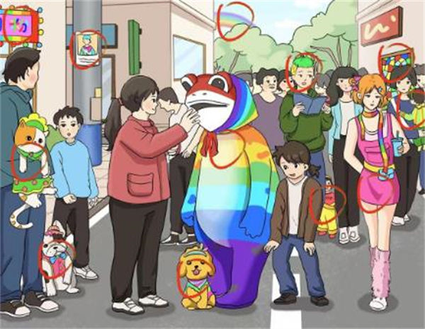 2、接着我们可以找到画面上的巴胺穿搭、多巴胺发型、多巴胺玻璃、多巴胺小孩、多巴胺青蛙等多巴胺的答案。