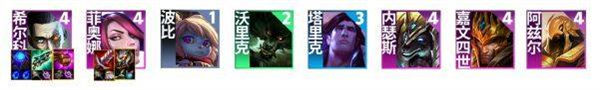 7人口由波比、奶妈、宝石、慎、皇子、剑姬、希尔科组成3德玛、2法师、2巨神峰羁绊