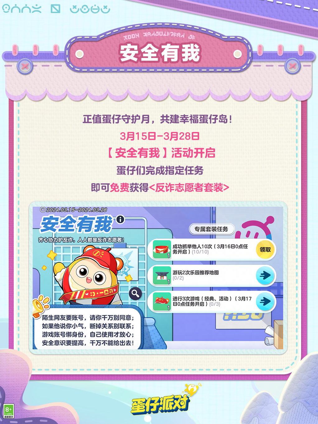 正值蛋仔守护月,快和皮蛋一起做反诈志愿者、共建幸福蛋仔岛——