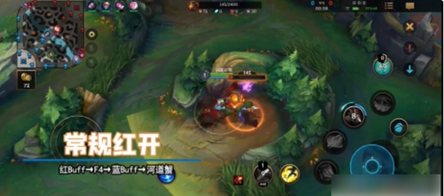 这里我们就来说一下开局的时候我们打野的常规选择是什么。一般情况下,我们的选择都可以是先打红BUFF将我们的等级提升到2级,然后是F4,再是蓝BUFF。