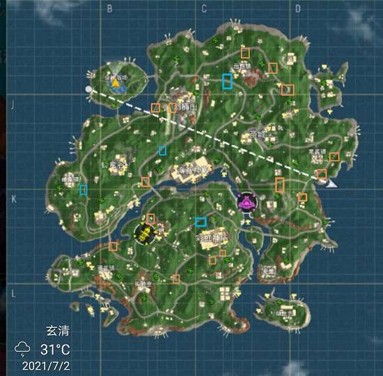 我一般都是跳酒桶山,大概在红线的起点有一辆车,坐上那辆车然后按图中红色路线走,如果酒桶山有人对自己实力没信心的话可以跳到蓝绿线的起点那片野区,那片野区有人的话就跳没人的野区。