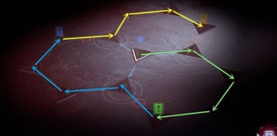 5、在新的区域按照绿-蓝-黄的顺序移动,最后到达黄色图标,转移到下一层。