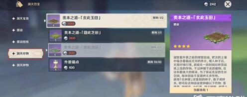 4.点击洞天珍物,就可以在此界面购买田地了