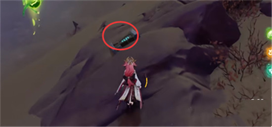 6、然后继续向北移动,向左前方看可以在岩石中找到一个圣章石。