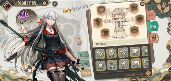每个英雄还可以佩戴装备,每种装备如果佩戴一定的数量,可以激活强化效果。比如猛攻4件套,可以提升英雄33%的攻击力;体魄2件套,可以提升英雄17%的生命值。