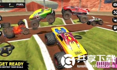 1、在怪兽卡车德比中操控自己的赛车,朝着终点冲刺,秀出你的操作,完成更多的驾驶体验;
