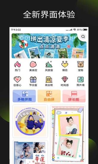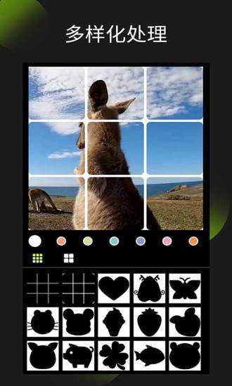 1、照片拼图,支持从手机相册之中上传多张照片在此创意拼接。