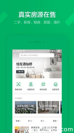 提供全真新的房源动态、高效的找房工具、一键式房屋委托等特色功能