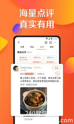 大众点评官方下载是一款我们日常生活中非常实用的在线消费平台手机软件app,这款手机软件里面有丰富的商家信息和特色功能,在这里带你吃喝玩乐,还有真实评价,避免踩坑上当;大众点评官方下载是当今用户消费指南,这里有任何你想要的服务,并且还有在线预订,智能搜索等还有更多优惠服务,在线领取大量优惠券,你消费,平台报销,让你享受最完美的服务,而且这里有最优质的品质,当你不知道吃什么,不知道去哪玩的时候,就来这里看看吧,周边所有服务,尽情挑选,非常方便,悠闲娱乐就上大众点评;你还在犹豫什么,喜欢这款手机软件的小伙伴,抓紧时间去下载安装吧。