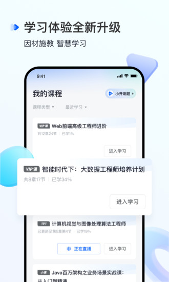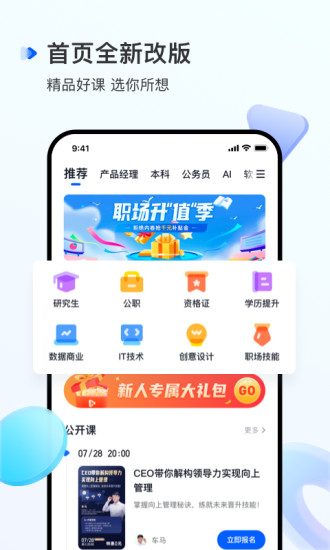 开课吧app苹果版是一款非常受欢迎的职业学习软件。开课吧app苹果版这里拥有非常多样的课程内容等你来选择,不论是职业能力提升还是学历提升,或者职业资格考试备考等都有提供,多样的课程满足用户的不同需求,获得更好的学习服务。